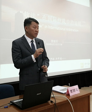 本次讲座的主题是“国际仲裁中‘软法’的适用”,由中国国际经济贸易仲裁委员会仲裁员、中伦律师事务所合伙人曹丽军律师主讲。曹丽军律师围绕“国际仲裁中‘软法’的适用”这一主题,从仲裁程序安排 、取证规则、利益冲突问题、律师代理行为指引等方面进行了详尽的讲解。