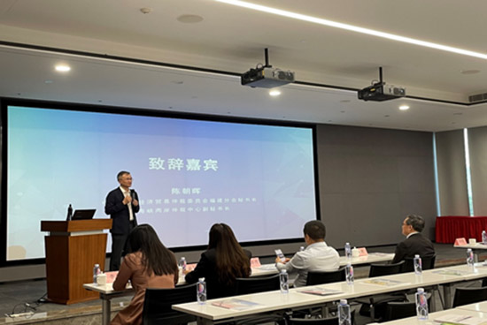 (贸仲福建分会秘书长、海峡两岸仲裁中心副秘书长陈朝晖致辞)