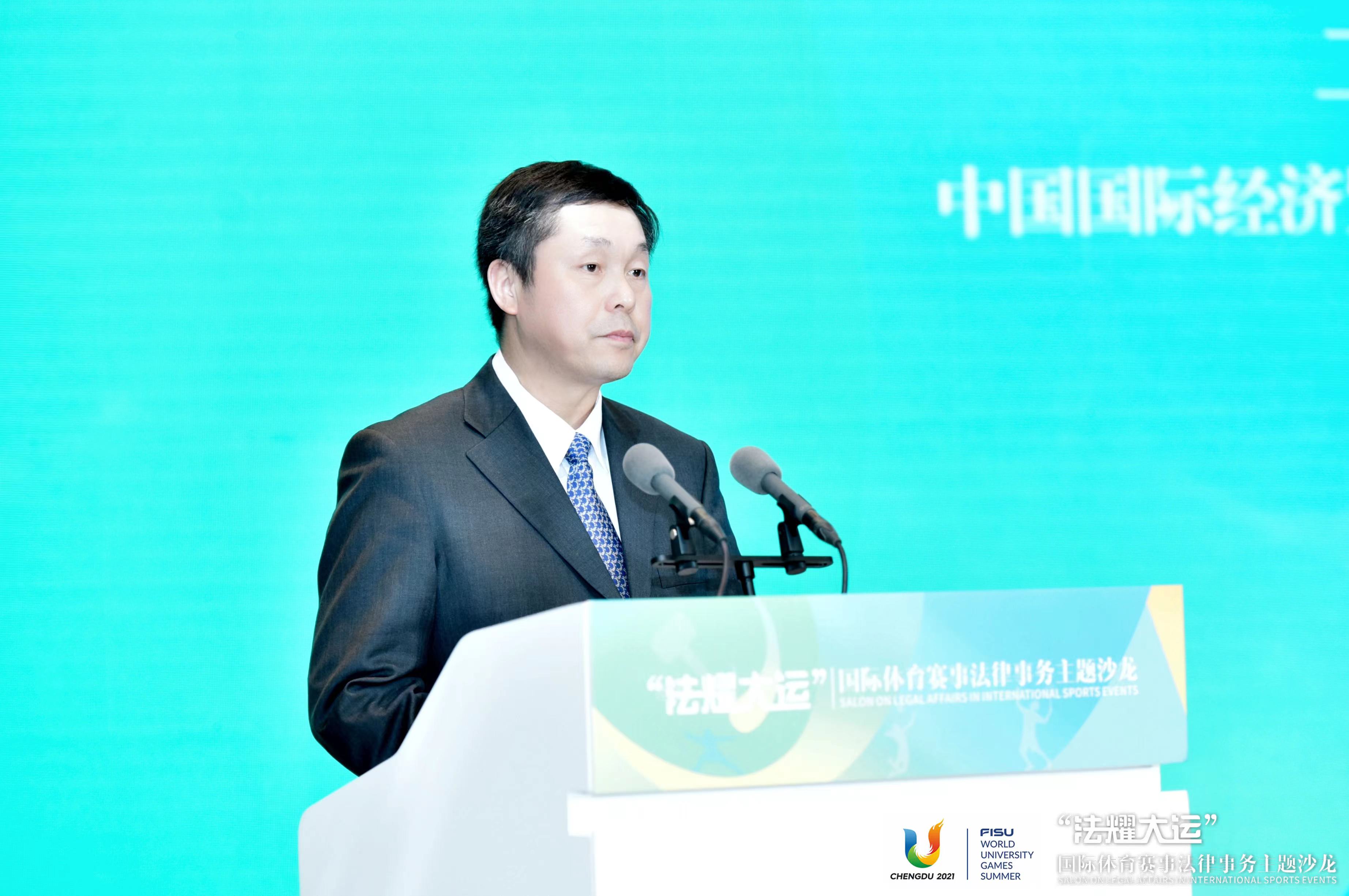 中国国际经济贸易仲裁委员会(“贸仲”)副主任兼秘书长王承杰出席“法耀大运”国际体育赛事法律事务主题沙龙并致辞。王承杰秘书长在致辞中表示,成都大运会是中国西部第一次举办世界性综合运动会,离不开法治的保驾护航。办好“法治大运”是各方共同的目标,也是促进我国体育法治事业发展完善的重要契机。王承杰秘书长还介绍了贸仲在体育争议解决方面的有关情况,并提出加强对体育争议解决研究,做好法律风险防范和预案,将有效助力成都大运会的顺利举办,也必将为我国迈向体育强国提供强有力的法治保障。