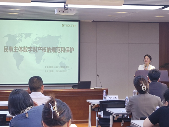 讲座特别邀请到北京市盈科(南京)律师事务所高级合伙人、中小企业法律事务部执行主任王向光律师和高级合伙人、刑事二部执行主任崔东晨律师,分别作题为“民事主体数字财产权的规范与保护”和“数字经济时代下企业的刑事法律风险及合规路径探讨”的专题演讲。