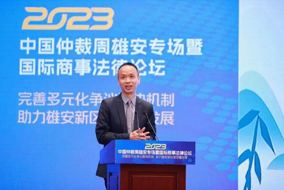 2023年9月5日,以“完善多元化争议解决机制 助力雄安新区高质量发展”为主题的 2023中国仲裁周雄安专场暨国际商事法律论坛在雄安会展中心举办。