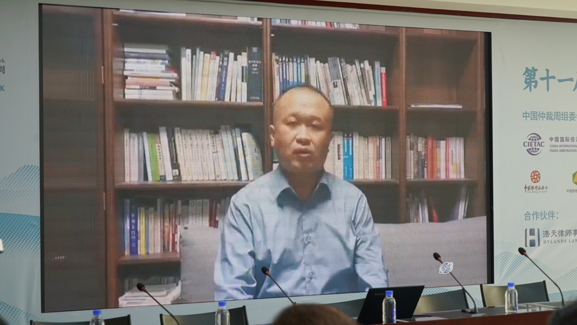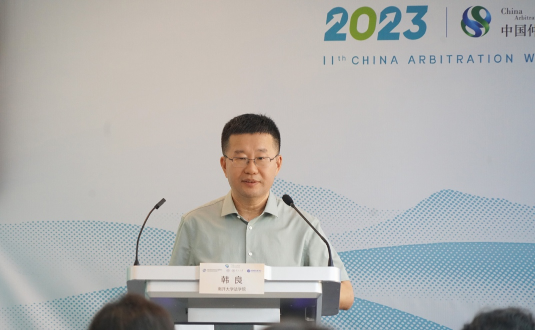 (贸仲仲裁员、南开大学法学院教授韩良主持研讨会)