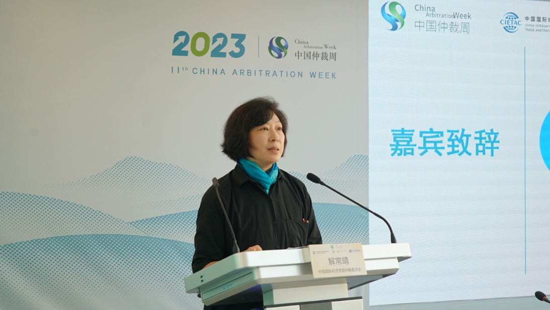 (贸仲仲裁院副院长解常晴发表开场致辞)