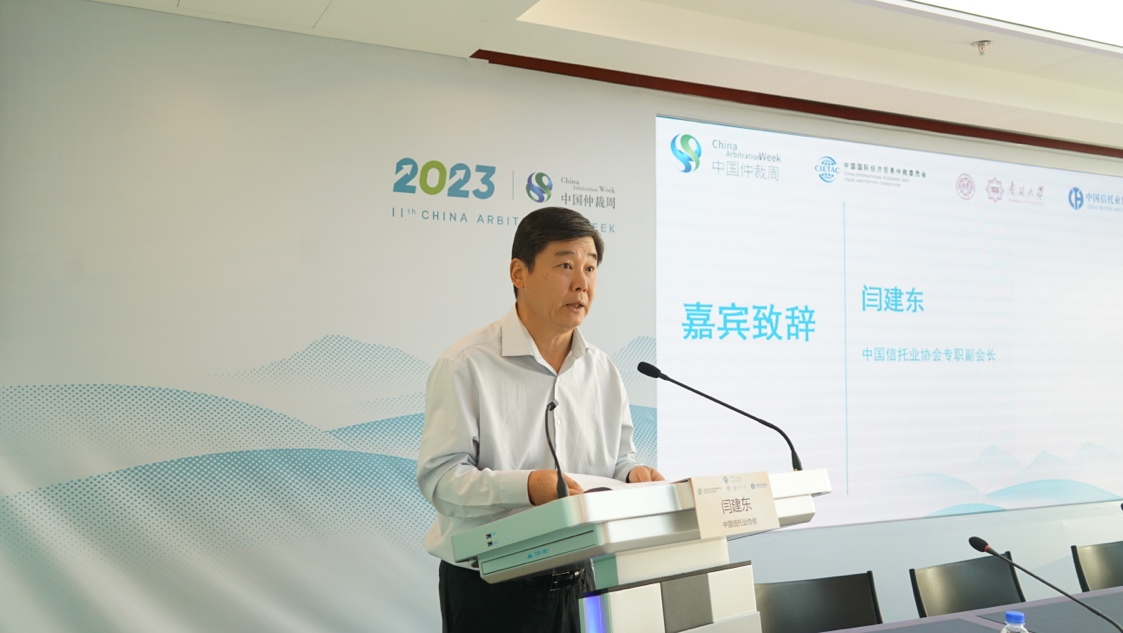 (中国信托业协会专职副会长闫建东发表开场致辞)
