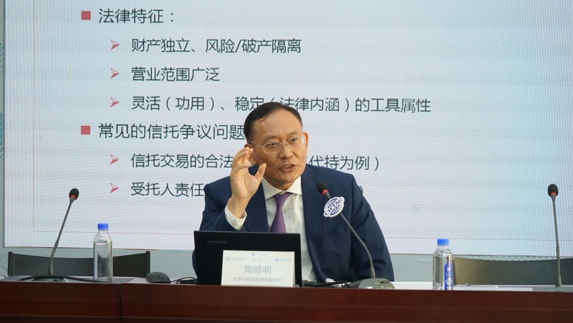 第二部分以“裁判视角下的信托争议——诉讼与仲裁”为主题。本部分围绕诉讼与仲裁的双视角,由嘉宾分别展开发言。北京金融法院审判第二庭审判员、三级高级法官李默菡围绕审判实践,分别强调了信托关系的认定与受托人的义务和责任两个问题。对于信托关系的认定,应秉持在对金融市场进行必要纠偏的时候,避免对金融市场过度干预的裁判理念。对于受托人的责任,应结合普遍性义务与一般性义务进行审查,核心在于尊重商业逻辑、尊重意思自治,保护创新、坚守法律。贸仲仲裁员、北京市君泽君律师事务所合伙人陶修明首先探讨了商事交易中信托工具的运用,其次以股权代持为例分析了信托交易的合法性问题,最后指出对于受托人责任的认定应当考量多种因素,结合个案具体情况进行责任分析。南开大学法学博士汤杰从信托内部争议解决出发,区分了信托外部争议与信托内部争议,信托内部争议是信托内部的信托当事人或利益相关人之间的争议,更适宜选择仲裁解决。汤杰博士总结了信托内部争议解决的国际趋势,指出虽然法院对信托的监督是信托制度的一项基本原则,但是当前ADR争议解决大量替代了法院的监督,也使这一原则逐步开始变通。
