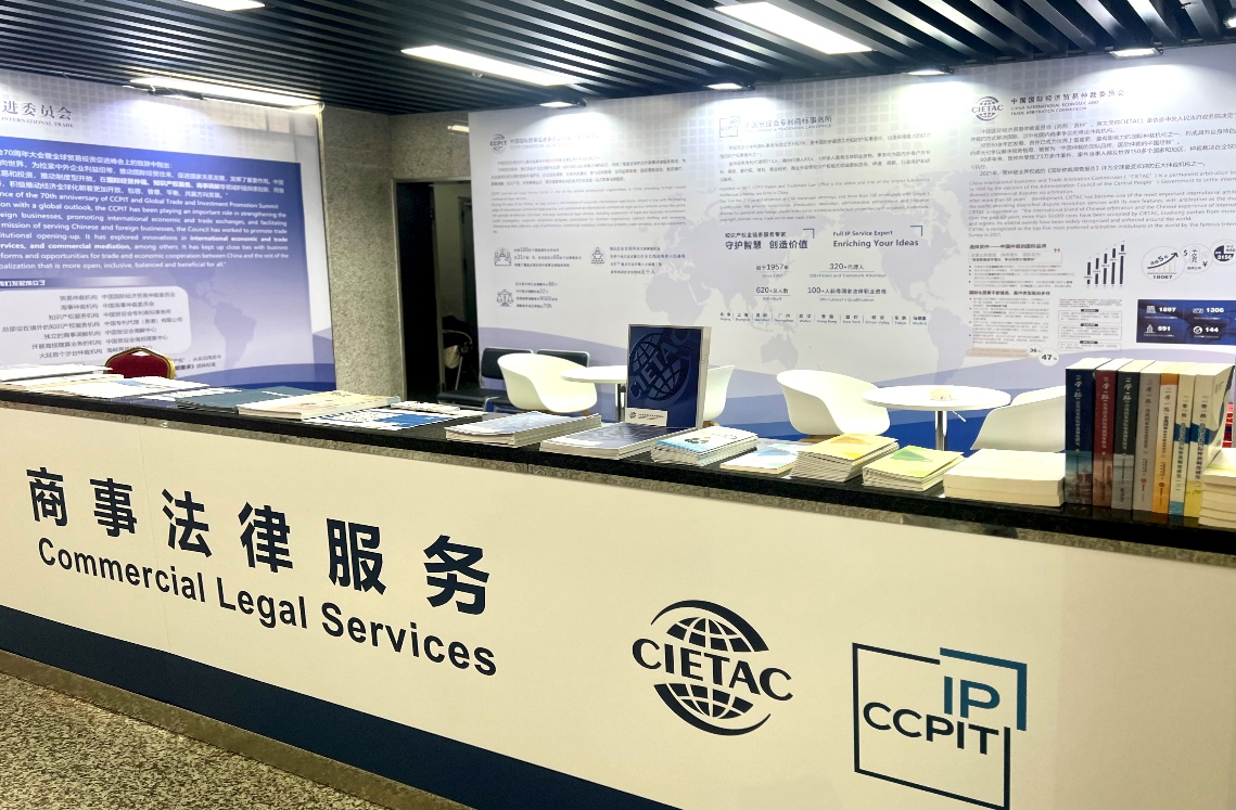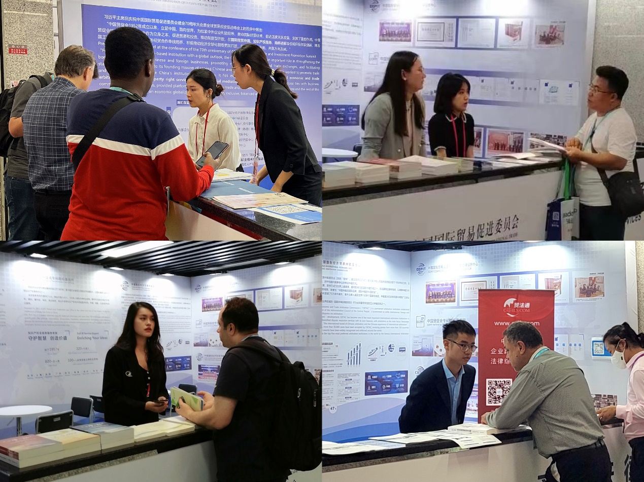 (贸仲工作人员为境内外参展商和采购商提供法律咨询服务)