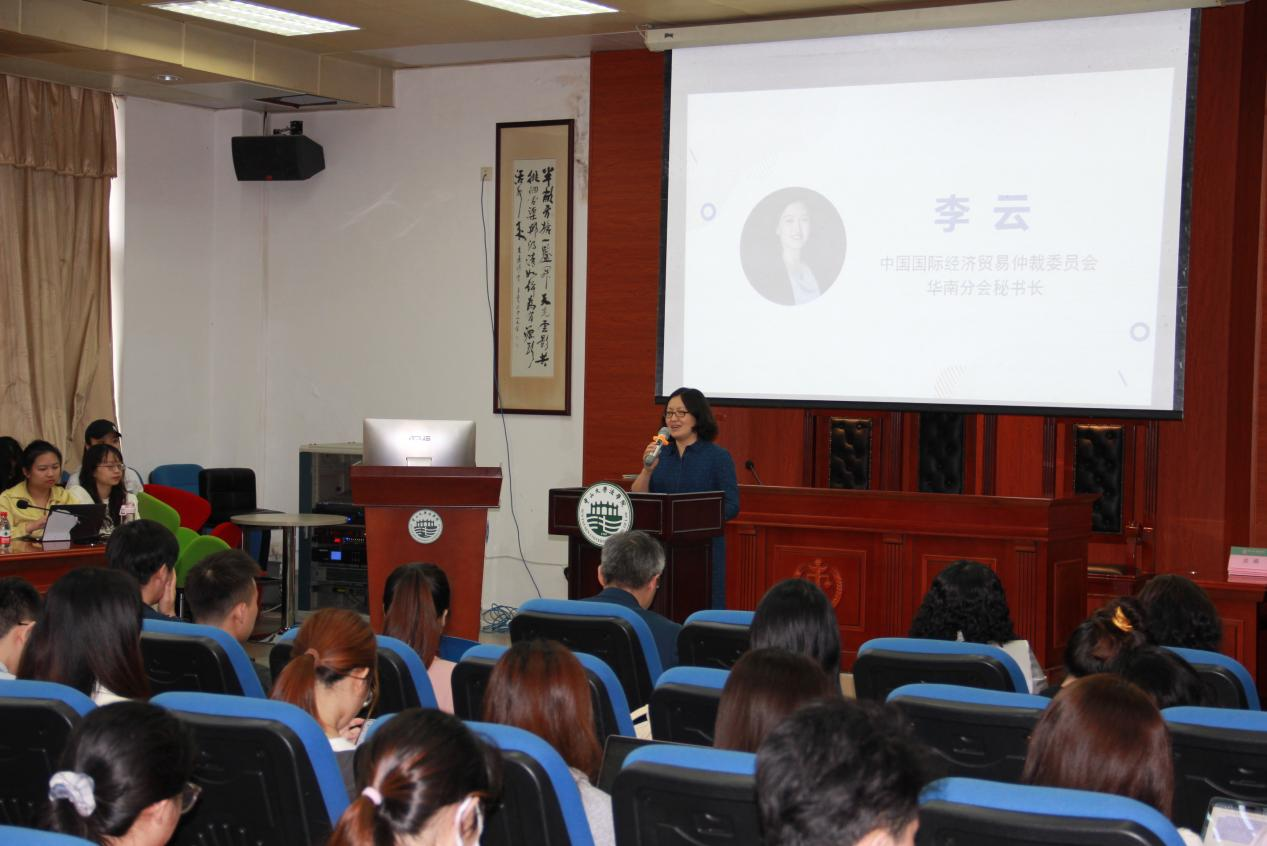 李云秘书长首先为本次活动致开幕辞。李云秘书长从贸仲历史沿革、举办国际模拟仲裁赛事“贸仲杯”、与高校联合培养涉外法治人才等方面介绍了贸仲及贸仲华南分会的发展情况。她表示愿持续与中山大学法学院在涉外法治人才培养项目中开展合作,并鼓励同学们投身中国涉外仲裁事业的建设,为中国仲裁事业的发展贡献力量。