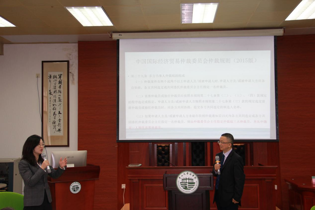 中山大学法学院教授谢石松对活动作总结发言。谢老师表示,仲裁制度的发展给法学院学生带来更多发展的机会,其中,贸仲作为中国第一家仲裁机构发挥着重要影响力。希望中山大学法学院与贸仲继续深化合作,将具有中国特色的国际仲裁推向更高层次的发展。