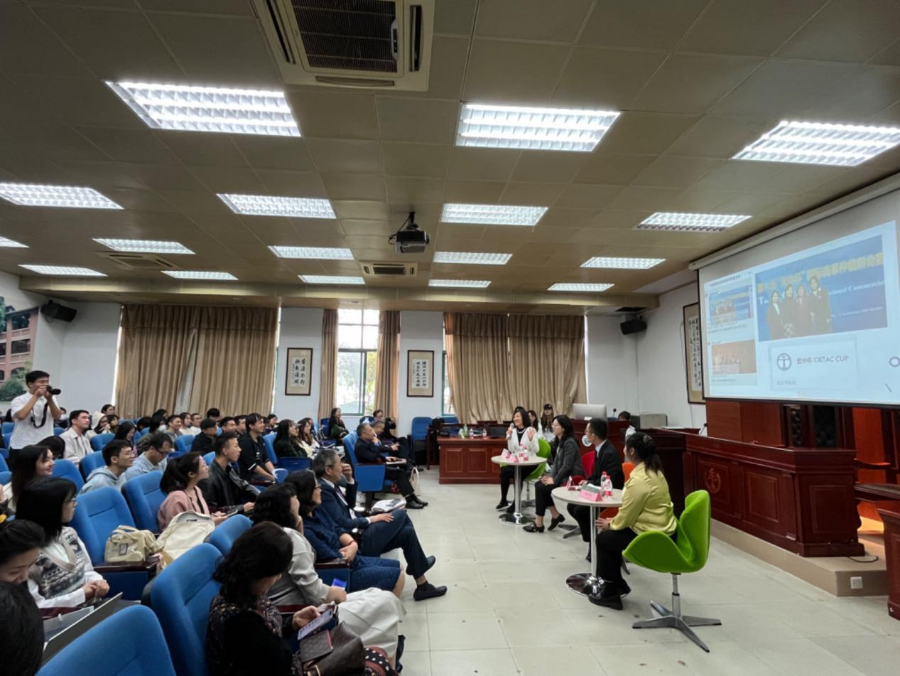 圆桌分享环节,贸仲华南分会副秘书长金曦、毛茅大律师、中山大学法学院模拟法庭教练蔡伟副教授、“贸仲杯”参赛队员黄文怡同学围绕“从模拟法庭到国际仲裁”话题,就参与模拟仲裁庭比赛所带来的个人成长收获、职业发展,以及模拟仲裁庭庭前准备、庭上表现等方面进行交流和分享。现场氛围热烈、干货满满。