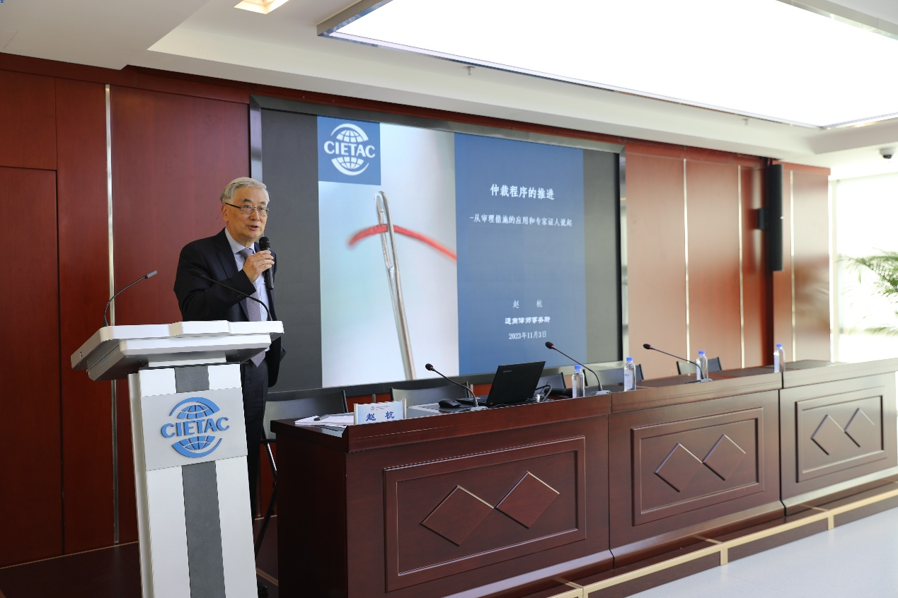 贸仲资深仲裁员、北京市通商律师事务所高级顾问赵杭结合具体实务案例,分享了案件审理中庭前审理措施应用的相关规则依据,程序令、审理范围书的作用以及制作样例,详细介绍了确定专家证人的依据、需要情形和作用等实务经验,并对高效推进案件审理等提出了相关建议。