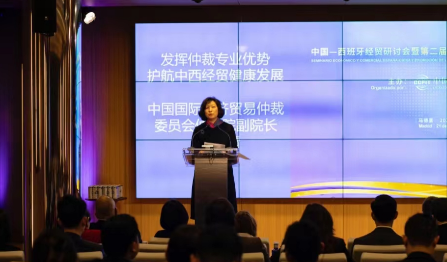 在2024年3月21日举办的“中国-西班牙经贸研讨会暨第二届链博会推介会”上,陈建安副会长、姚敬大使致辞,中西经贸、法律界人士围绕会议主题发表主旨演讲和作出推介。贸仲仲裁院副院长解常晴以“发挥仲裁专业优势、护航中西经贸健康发展”为题发表演讲。她表示:伴随着中西经贸往来多维度走深走实,亟需高效便利、公正专业的跨境仲裁服务提供法律保障;西班牙和中国都是底蕴深厚的国家,不同的语言、文化和法律传统,会成为当事人参与仲裁的障碍和不利因素,因而,大力推动经贸合作的同时,加强中西法律界交流合作,促进规则融通和制度对接,推动两国商事争议解决法治保障体系的完善同样具有迫切性和重要性。同时,也期望两国企业加强与律师界和仲裁界的沟通交流,重视法律风险管控,妥善应对争议;贸仲在解决跨境争议方面积累了丰富的经验,贸仲仲裁的独立公正、高效专业得到广大国际仲裁用户的高度认可,贸仲愿意与全球的工商界、法律界一道,共同为国际商务往来保驾护航、为促进中西经济贸易健康发展做出更加积极的贡献。