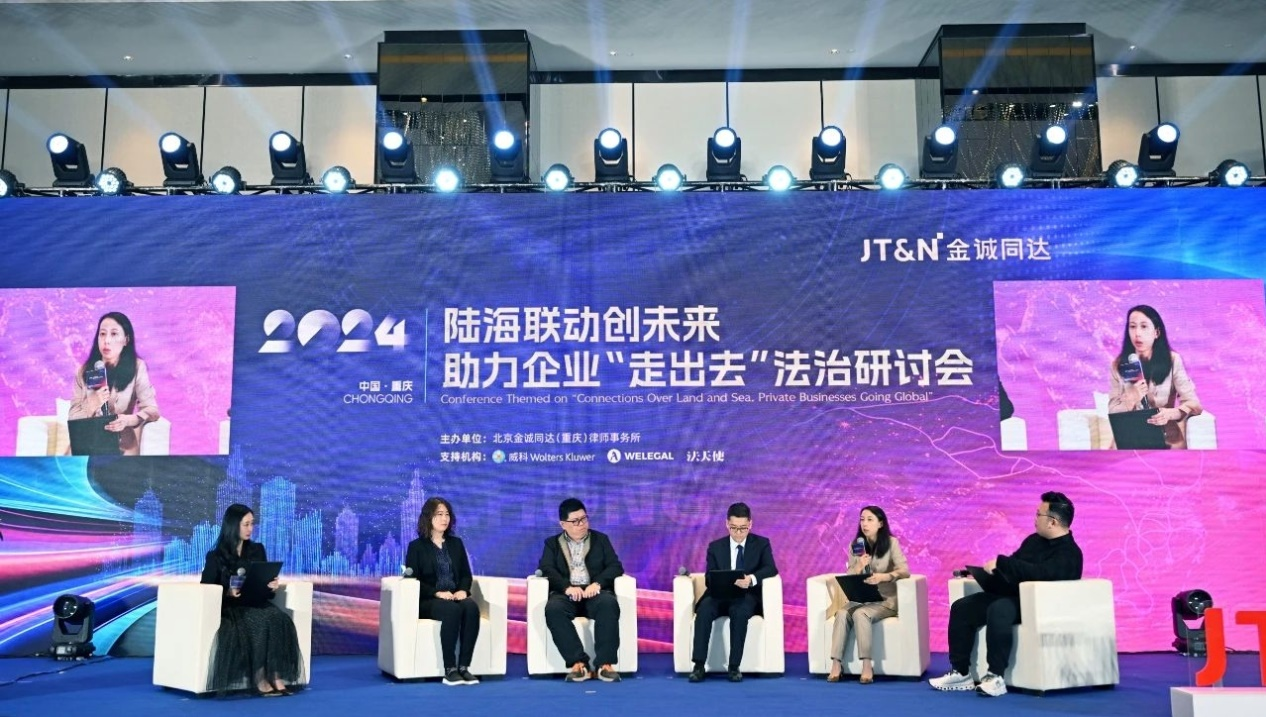 3月23日,“陆海联动创未来 助力企业‘走出去’法治研讨会”在重庆举行。本次研讨会由北京金诚同达(重庆)律师事务所主办。金诚同达主任杨晨先生、重庆市工商联副主席黄昕先生、重庆市律师协会会长何洪涛先生、中国法学会商法学研究会副会长赵万一先生出席研讨会并作开幕致辞。