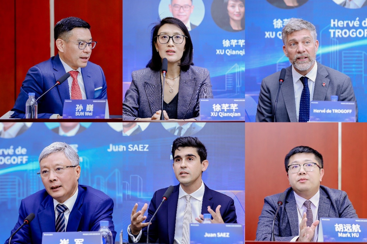 (从左至右、从上到下分别为:中伦律师事务所合伙人孙巍、中国建筑股份有限公司法律事务部高级经理徐芊芊、安可锐咨询伦敦办公室管理合伙人,全球项目咨询和争议解决业务负责人Hervé de TROGOFF、北京海外君合工程咨询有限公司董事长崔军、工期延误专家,英国、西班牙和海湾地区国家建筑法协会会员Juan SAEZ、品诚梅森律师事务所建筑工程风险与争议解决部中国区负责人胡远航)