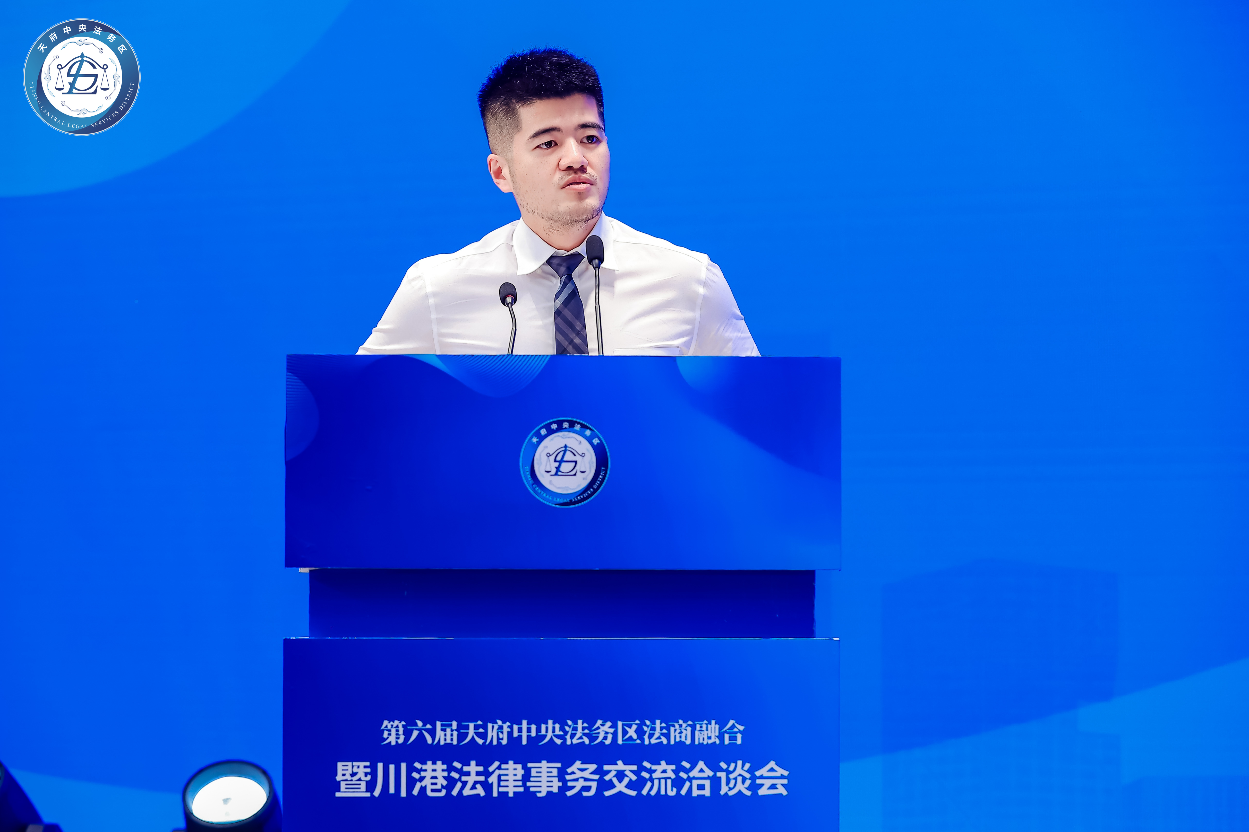 在主题分享环节,香港大律师公会执委会副名誉秘书王永恺以仲裁助力川港合作、川货出川、律师出海为例,带来新形势下经贸法律问题及四川争议解决实践主题演讲。