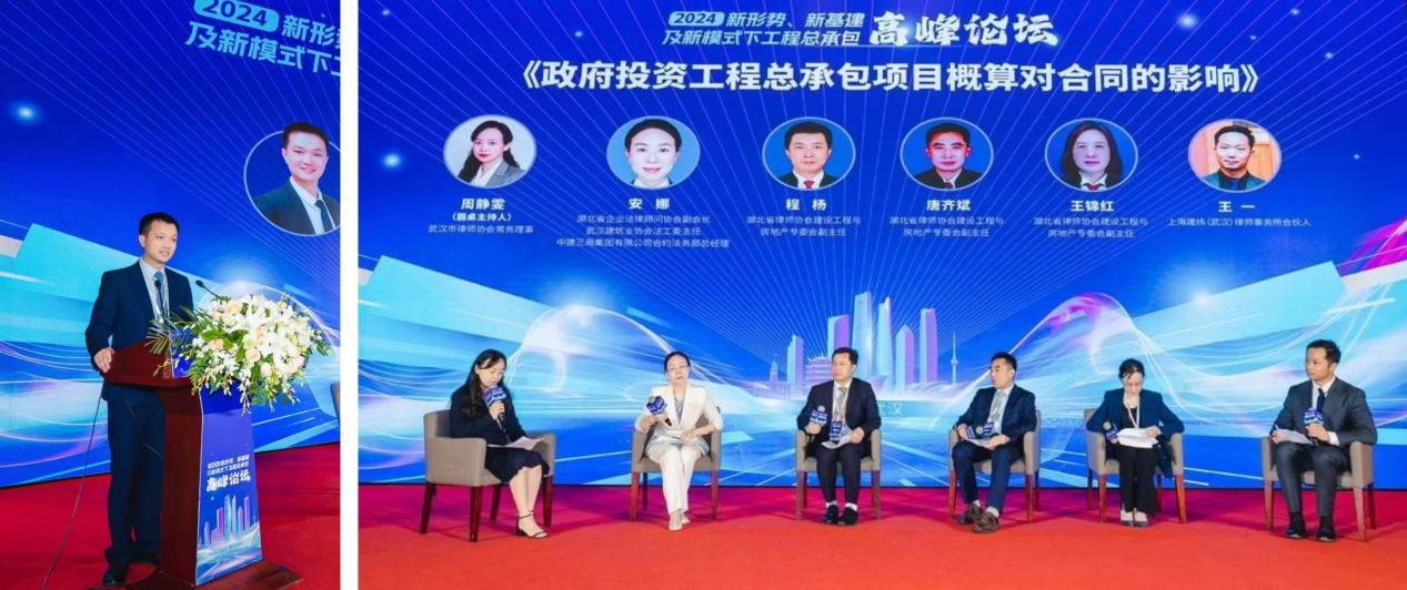 圆桌讨论环节由湖北省律师协会建设工程房地产专业委员会副主任雷明辉主持。第一场圆桌讨论围绕“政府投资工程总承包项目概算对合同的影响”展开,武汉市律师协会常务理事周静雯主持。湖北省律师协会建设工程与房地产专委会副主任程杨、唐齐斌、王锦红,武汉建筑业协会法工委主任、中建三局合约法务部总经理安娜,上海建纬(武汉)律师事务所合伙人王一作为研讨嘉宾展开讨论。