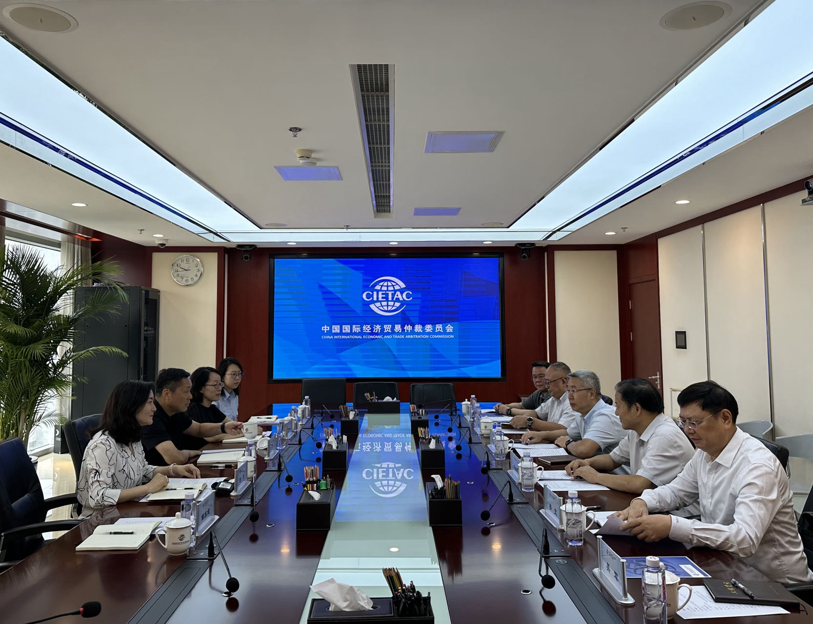 2024年9月3日,重庆市司法局一行到访中国国际经济贸易仲裁委员会(以下简称“贸仲”)调研座谈,贸仲副主任兼秘书长王承杰接待了调研小组一行。调研小组由重庆市司法局党委书记、局长种及灵带队,成员由重庆市司法局、重庆市仲裁办以及中国国际贸易促进委员会重庆市委员会(以下简称“重庆市贸促会”)组成,双方围绕积极推进重庆国际商事仲裁中心试点建设进行了调研座谈。