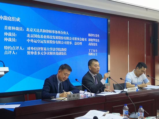 本期模拟仲裁庭由贸仲委的三名资深仲裁员组成。北京天达共和律师事务所合伙人韩津生先生担任首席仲裁员,北京国农基业科技发展股份有限公司董事会秘书游晓华先生和中外运空运发展股份有限公司董事、总经理高伟先生分别担任申请人和被申请人选定的仲裁员。