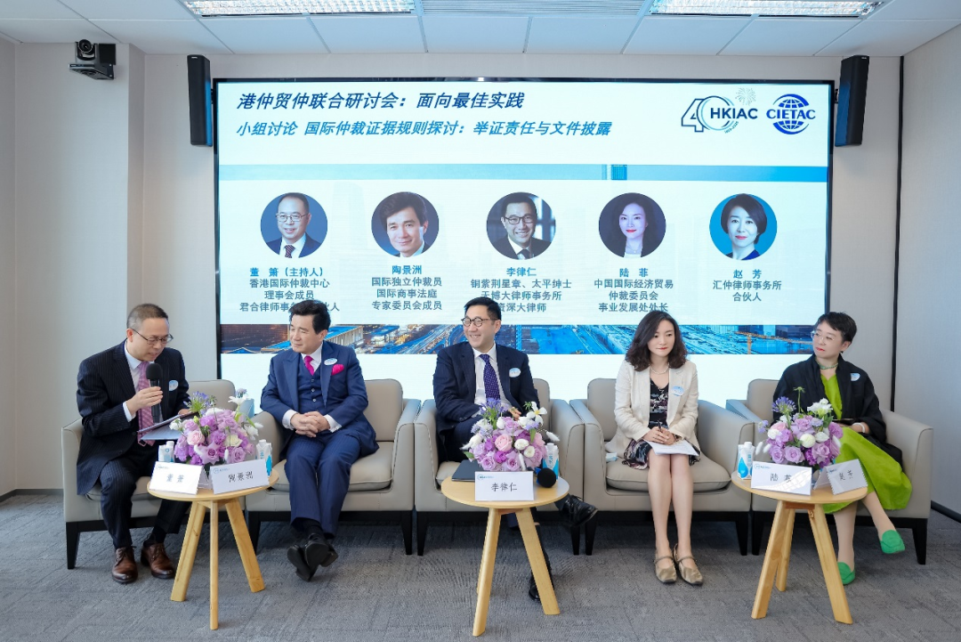 小组讨论环节以“国际仲裁证据规则探讨:举证责任与文件披露”为主题,由港仲理事会成员、君合律师事务所合伙人董箫主持。贸仲事业发展处处长陆菲,国际独立仲裁员、国际商事法庭专家委员会成员陶景洲,天博大律师事务所资深大律师李律仁及汇仲律师事务所合伙人赵芳共同围绕贸仲新版《证据指引》的适用、普通法系与大陆法系在证据规则上的差异、雷德芬表格的运用及举证责任与证据出示义务的分配等核心议题展开深入探讨,为国内外仲裁实践提供了有益借鉴。