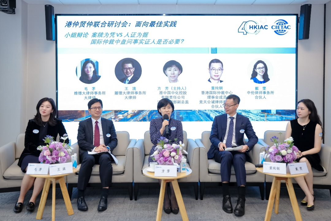 小组辩论环节以“案牍为凭 VS 人证为据——国际仲裁中盘问事实证人是否必要?”为题,由原中国中化控股有限责任公司法律合规部副总监方芳主持。香港国际仲裁中心理事会成员、竞天公诚律师事务所合伙人董纯钢,中伦律师事务所合伙人戴雯,维德大律师事务所大律师毛茅,履德大律师事务所大律师王漓共同就事实证人盘问的必要性进行了激烈而富有建设性的讨论,呈现了不同法系下仲裁证据规则的实践差异与经验借鉴。