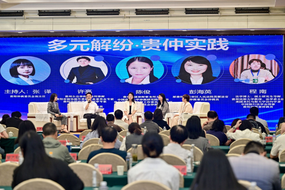 圆桌对话环节以“多元解纷·贵仲实践”为主题,由贵阳仲裁委员会副主任张译主持。贵州大谋律师事务所主任陈俊、贵州公达律师事务所律师许亮、贵州民族大学教授程南、原贵阳市云岩区人民法院员额法官彭海英等多位专家,分别从律师实务、学术研究和司法实践等不同视角,分享了多元纠纷解决机制的实践经验,并就仲裁与调解、诉讼等解纷方式之间的衔接与协同进行了深入探讨。