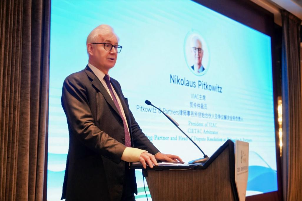 Nikolaus Pikowitz主席在致辞中回顾了与贸仲的合作历程,系统阐述了VIAC的高效程序管理与中立法域地位。Nikolaus Pitkowitz指出,近年来,维也纳国际仲裁中心受理的涉及亚洲特别是中国当事人的案件数量显著增长,与中国法律界及企业界的互动持续深化。他提到,今年是VIAC成立50周年,是VIAC历史的重要里程碑,他期待VIAC与贸仲在现有合作基础上构建更紧密的协同机制,共同提升跨境争议解决的质效。