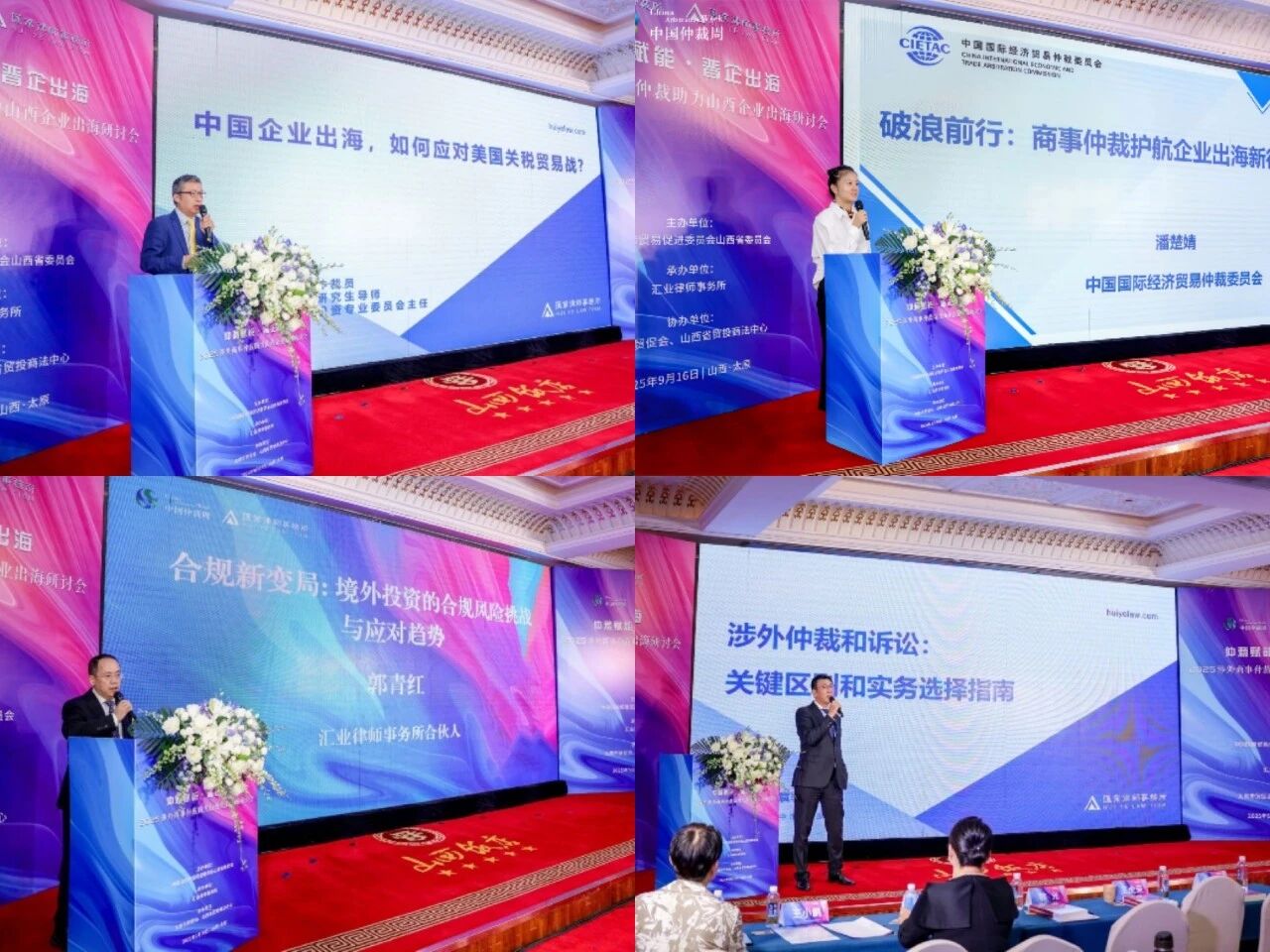 2025年9月16日,“仲裁赋能·晋企出海”2025年涉外商事仲裁助力山西企业出海研讨会(以下简称“研讨会”)在太原成功举办。会议由中国国际经济贸易促进委员会山西省委员会(以下简称“山西省贸促会”)主办、汇业律师事务所承办,太原市贸促会、山西省贸投商法中心协办。相关政府部门负责同志、相关协会代表、企业代表、律师及仲裁员等近80人现场参加了本次活动。