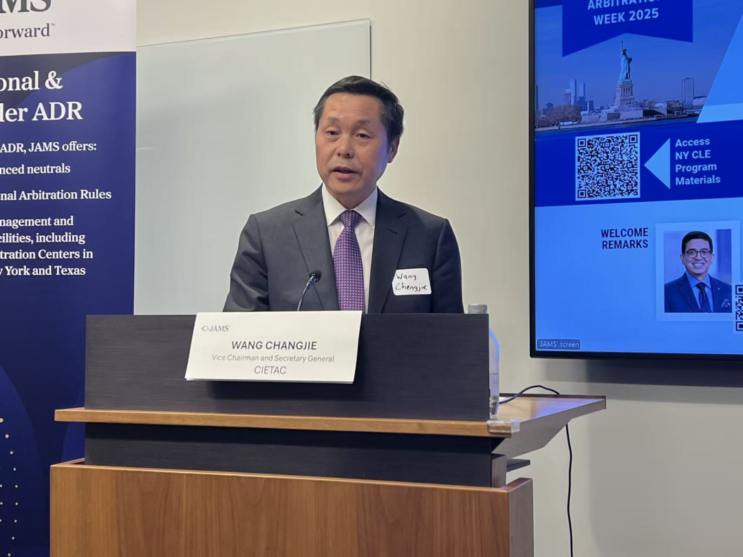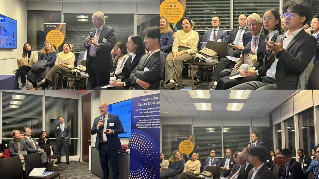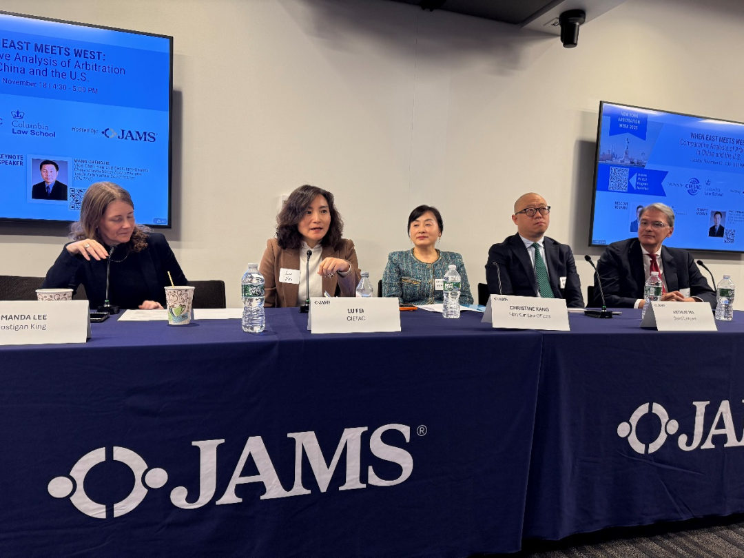 2025年11月18日,在2025纽约仲裁周(New York Arbitration Week, NYAW)期间,由中国国际经济贸易仲裁委员会(贸仲)与哥伦比亚大学法学院(Columbia Law School)联合主办、美国司法仲裁调解服务机构JAMS承办的专题活动“When East Meets West: Comparative Analysis of Arbitration in China and the U.S.”(东西交融:中美仲裁制度的比较分析)在纽约成功举行。活动吸引了来自美国、英国、荷兰、德国、西班牙、中国等国家的学术界及实务界的100多名专业人士参加,来自普通法系及大陆法系的专家围绕中美两国仲裁法律规则与实践、国际仲裁的新发展等话题展开了全面分享和深度探讨。