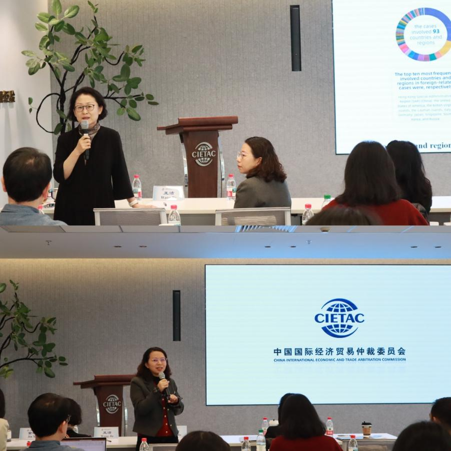 贸仲华南分会案件经办人彭舒熳向来宾介绍了贸仲华南分会所在的城市——深圳。资深案件经办人谢唯详细讲解了贸仲概况,新规则亮点以及国际合作交流的相关实践,并重点介绍与东盟国家密切相关的案件数据和交流成果。