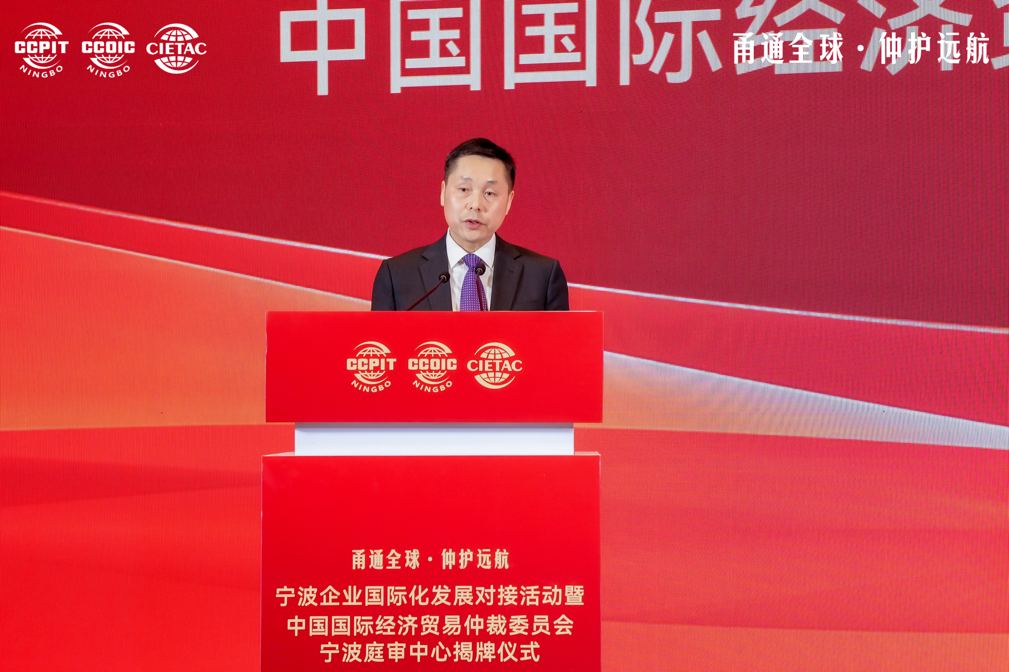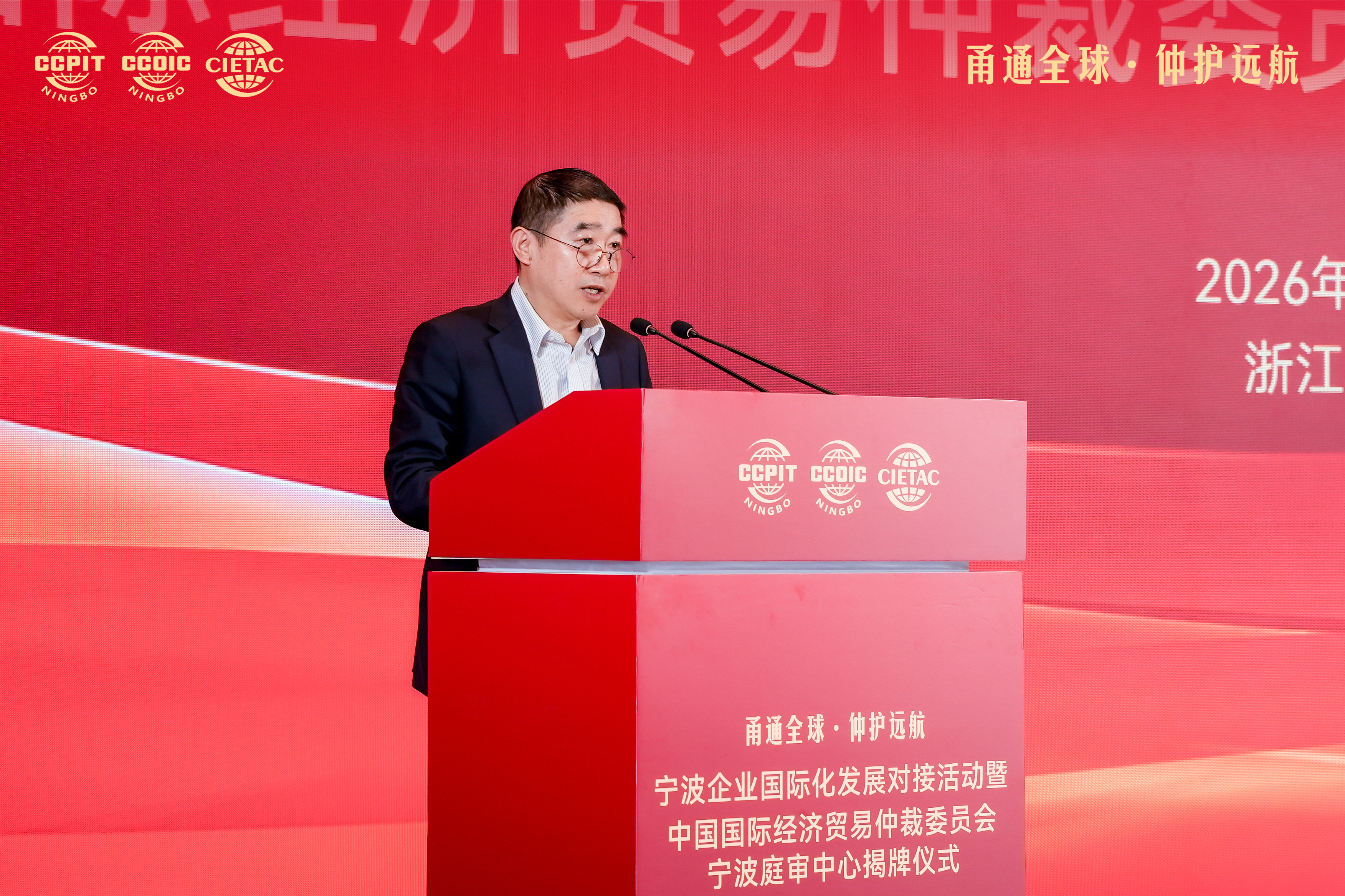 会议最后,宁波市贸促会会长颜伟国致闭幕辞。他表示宁波贸促会将以贸仲宁波庭审中心揭牌为起点,高质量服务宁波开放型经济发展大局、维护企业国际化经营合法权益、构建多方协作联动机制,助力宁波市高能级开放强市建设。