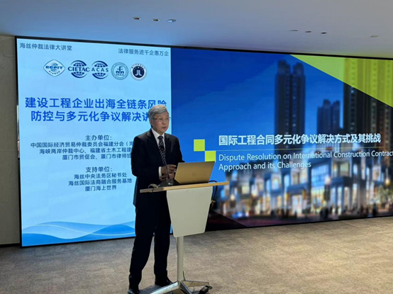 2026年1月14日下午,由中国国际经济贸易仲裁委员会(下称“贸仲”)福建分会(海丝仲裁中心)、海峡两岸仲裁中心(下称“海峡中心”)、福建省土木工程建筑行业协会、厦门市贸促会、厦门市律师协会共同主办,海丝中央法务区秘书处、海丝国际法商融合服务基地和厦门海上世界支持的“建设工程企业出海全链条风险防控与多元化争议解决讲座”在厦门成功举办。近70位政府机构、建筑企业和律师界代表参会。