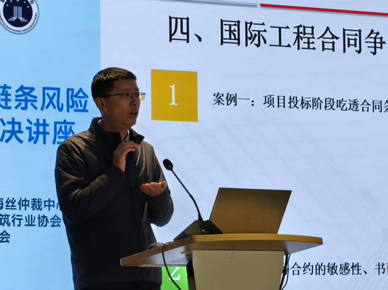 在专题演讲环节,贸仲仲裁员谭敬慧以“中国建设工程争议解决法律实务研究”为题分享。她结合实务案例介绍了建设工程争议中外国法查明的常见问题及应对方式、涉外工程合同不同价格模式的注意事项及其风险、不同法系工程价款争议鉴定程序启动、专家机制在工期索赔仲裁争议中的具体应用、各国法律关于“背靠背条款”的性质认定、PPP争议可仲裁性等实务话题,为出海企业提供了有效指引。