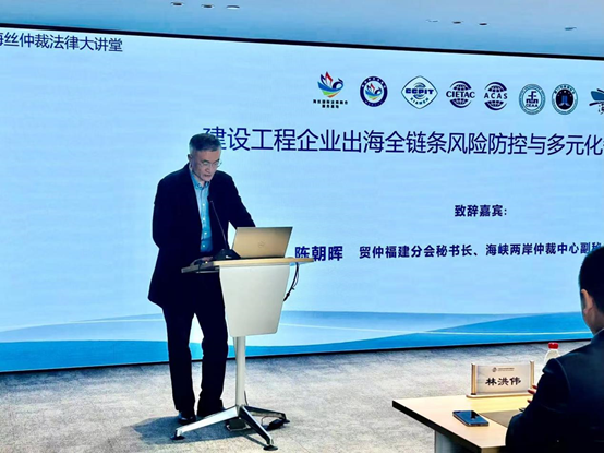在致辞环节,贸仲福建分会秘书长、海峡两岸仲裁中心副秘书长陈朝晖表示,贸仲和海峡两岸仲裁中心始终坚持在建设工程争议解决领域探索创新,不断优化规则体系与裁判机制,积极构建专业性、有针对性的多元化建设工程争议解决平台。他强调,新形势下贸仲和海峡两岸仲裁中心将以国际一流的仲裁法律服务,为建设工程企业“国内+出海”双轮驱动,实现可持续发展提供助力。