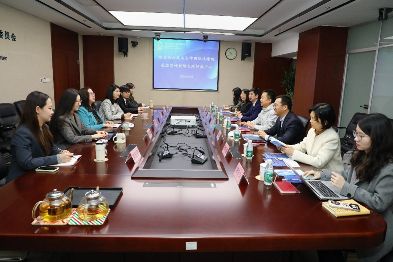 3月18日,西北政法大学国际法学院书记李立、院长张超汉一行到访中国国际经济贸易仲裁委员会丝绸之路仲裁中心(简称“贸仲丝路中心”),贸仲丝路中心副秘书长蒋红梅会见座谈,双方就涉外法治人才培育、校地协同实践等议题深入研讨。