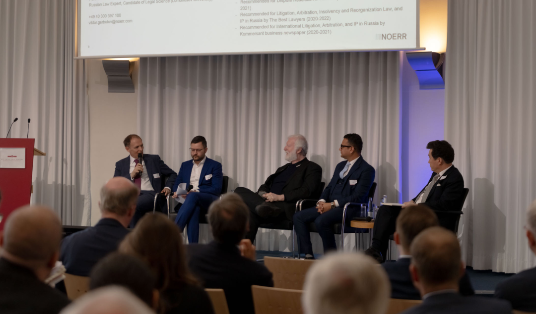 3月23日,在2026汉堡国际仲裁日期间,贸仲与DIS以及巴西-加拿大商会仲裁与调解中心(Center for Arbitration and Mediation of the Chamber of Commerce Brazil-Canada,简称CAM-CCBC)联合举办了以“欧盟制裁与俄罗斯卢戈沃伊法时代下的仲裁及执行程序”为主题的国际仲裁研讨会。在研讨会上,贸仲仲裁员陶景洲先生围绕着依据俄罗斯卢戈沃伊法作出的裁决在中国的效力及相关制裁制度对跨境争议解决可能产生的影响进行了专题分享。