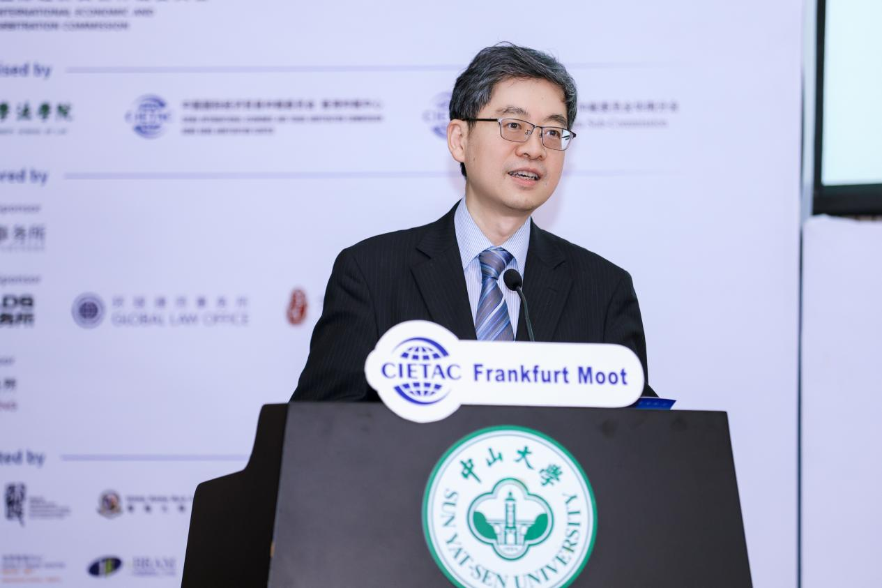 主旨演讲环节,香港特别行政区律政司国际法律专员、亚太经合组织经济委员会主席丁国荣博士从投资者—国家争端解决机制(ISDS)角度出发,以香港实践为例,介绍了香港在“一国两制”下,推进投资协定网络建设并参与国际投资仲裁实践,在相关规则制定和发展中发挥的积极作用。在此基础上,他进一步分析了投资者—国家争端解决机制在成本、效率及合法性方面面临的挑战,指出国际社会正通过多边机制持续推进改革完善。围绕改革方向,他强调在完善投资者—国家争端解决机制的同时,应积极发展以调解为代表的多元化争议解决路径,并重点介绍香港在打造“调解之都”所作举措,包括积极支持和推进国际调解院落户香港并设立总部,及通过香港国际法律人才培训学院平台为我国培养高质量涉外法治人才和调解专才。最后,丁国荣博士寄语青年法律人才不断提升专业能力与国际视野,在参与国际规则构建与法治实践中发挥更大作用。