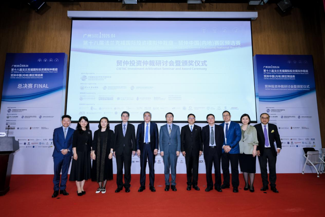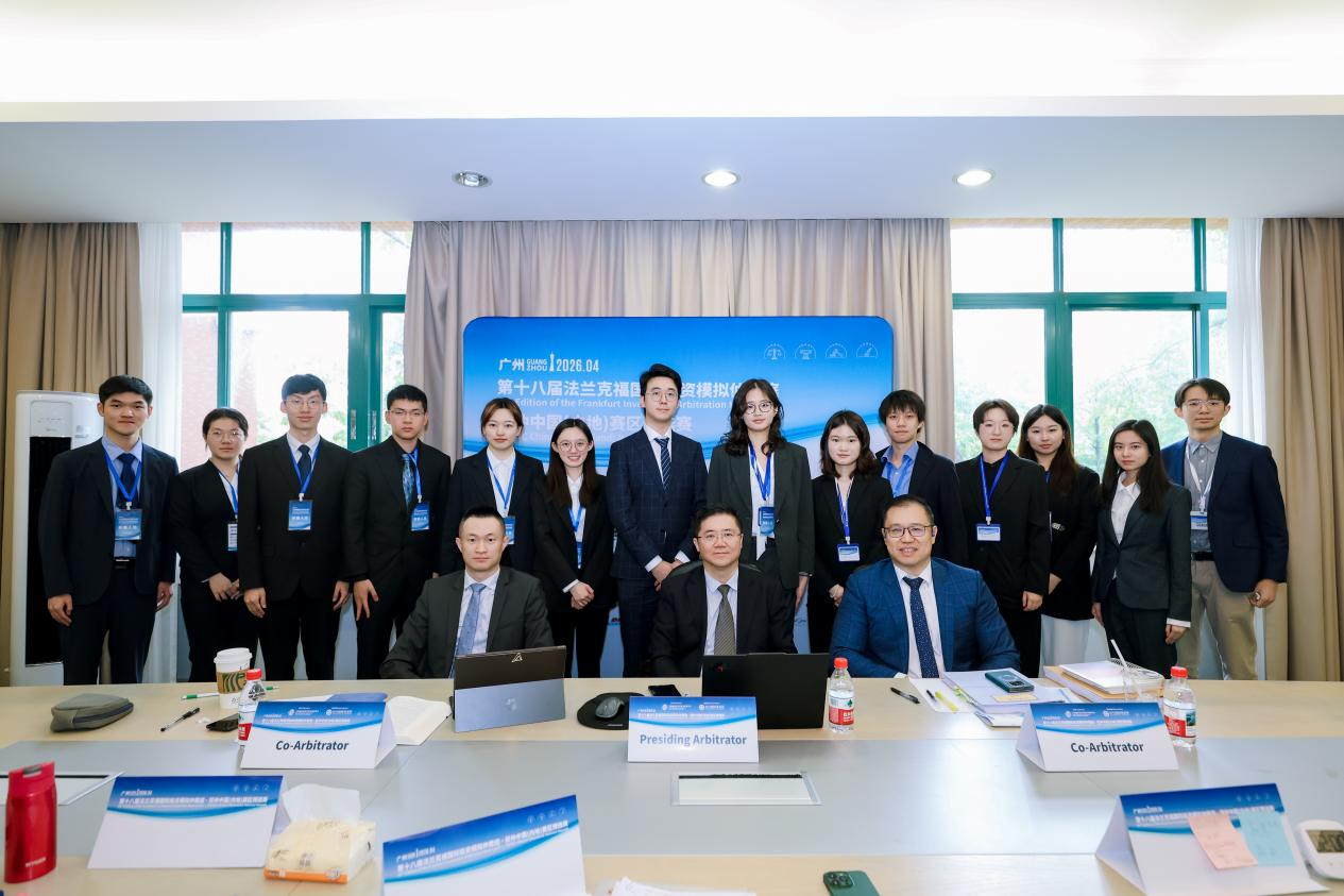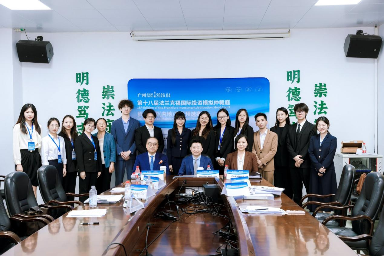 2026年4月8日至12日,由中国国际经济贸易仲裁委员会(以下简称“贸仲”)主办并由贸仲香港仲裁中心、贸仲华南分会和中山大学法学院承办的第十八届法兰克福国际投资模拟仲裁庭——贸仲中国(内地)赛区预选赛在广东广州成功举办。历经4天共69场激烈角逐,最终,北京大学代表队摘得桂冠,对外经济贸易大学代表队夺得亚军,复旦大学代表队和中南财经政法大学代表队荣获季军。循环赛前三名队伍,即中南财经政法大学代表队、复旦大学代表队和对外经济贸易大学代表队获得参加在德国法兰克福举行的第十八届法兰克福投资仲裁模拟法庭国际赛区赛事资格。本次赛事共吸引39支队伍、300余名学生参赛,来自中国内地、中国香港、新加坡、韩国、英国、澳大利亚、哥斯达黎加、德国、阿尔巴尼亚、菲律宾等多个司法管辖区的近百名专家担任仲裁员裁判,并获得二十余家国际仲裁机构及知名律所的大力支持,赛事规模和国际影响力持续提升,参赛队伍数量、仲裁员人数及国际化程度均创历史新高。