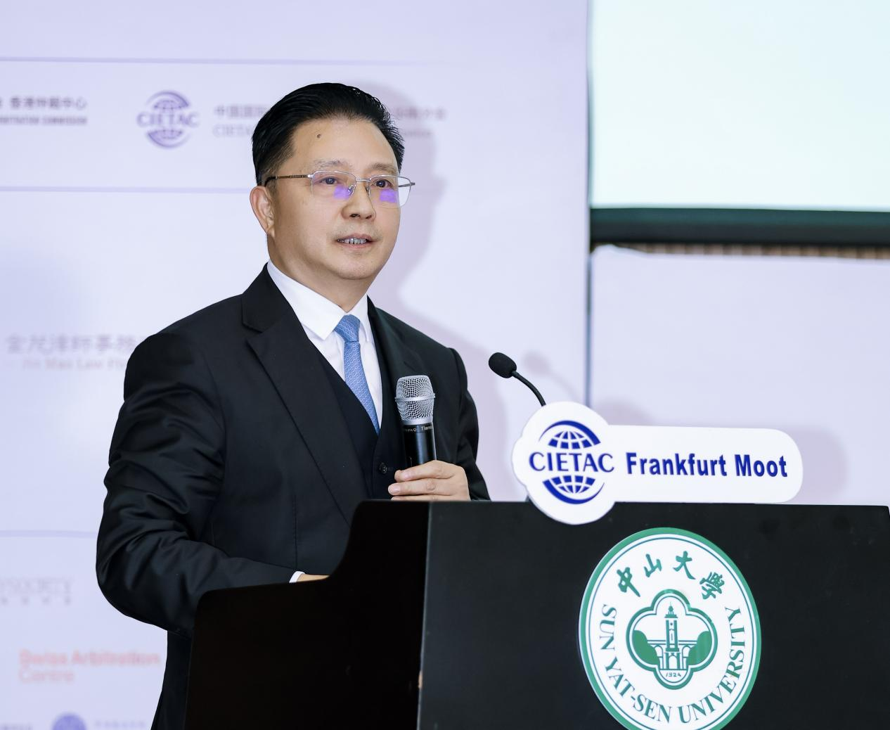 中山大学法学院院长张亮教授介绍了中山大学的发展历程,并重点阐述了中山大学法学院通过以赛促教、以赛促学的人才培养模式在法兰克福国际投资模拟仲裁系列赛事中多次取得优异成绩。未来,中山大学法学院将继续与贸仲深化合作,在人才培养与学术交流等方面加强联动,共同推动我国涉外法治人才培养和仲裁事业发展。