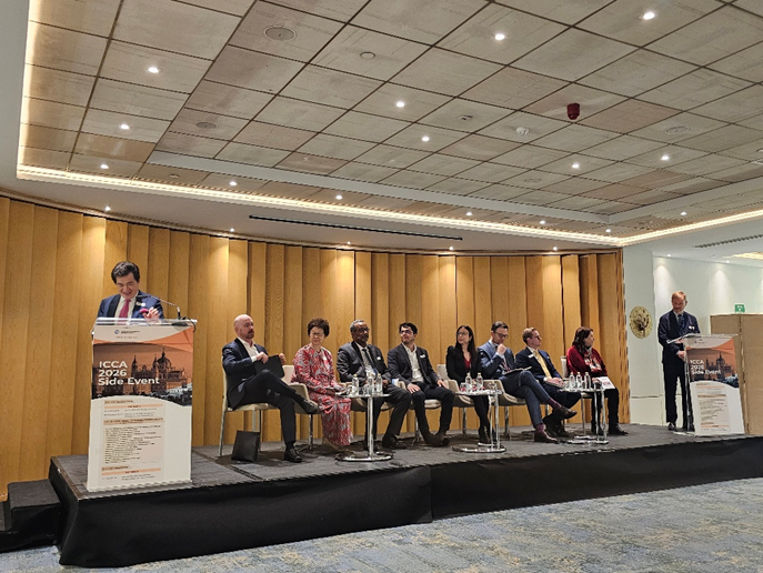 本次研讨会共设置两个环节。独立仲裁员陶景洲、独立仲裁员Paulo Fohlin以及Wong Partnership管理合伙人Sean Yu Chou共同担任主持人。第一环节中,亚洲国际仲裁中心主席Mary Lim、巴林争议解决中心首席执行官Ahmed Husain、波哥大仲裁中心高级仲裁律师Gabriel Mejía García、马德里国际伊比利亚美洲仲裁中心副主席Urquiola de Palacio、迪拜国际仲裁中心资深法律顾问Laura Jiménez Jáimez、常设仲裁法院高级法律顾问José Luis Aragón Cardiel、瑞典斯德哥尔摩商会仲裁院Nils Ivars、瑞士仲裁中心主席Christopher Boog共8家机构代表先后发言。