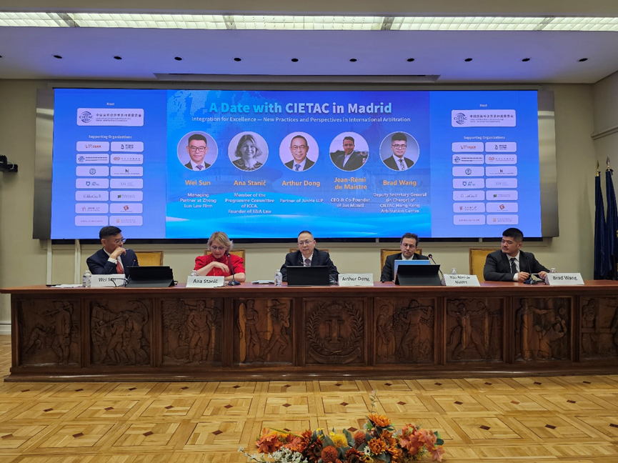 2026年4月12日下午,值参加第二十七届国际商事仲裁理事会(以下简称“ICCA”)大会之际,中国国际经济贸易仲裁委员会(以下简称“贸仲”)在西班牙马德里成功举办“贸仲有约:融通•致远——国际仲裁的新实践与展望研讨会”。本次会议获得14家仲裁机构、律师协会、商会及律师事务所的鼎力支持。贸仲仲裁院副院长解常晴女士、马德里国际仲裁中心-伊比利亚美洲仲裁中心主席José María Alonso Puig、中国国际贸易促进委员会(以下简称“贸促会”)西班牙代表处代表、西班牙中国商会副会长翟利波出席开幕式并致辞。开幕式由贸仲事业发展处副处长刘飞女士主持。