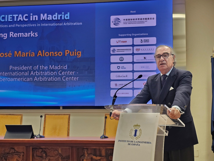 (马德里国际仲裁中心-伊比利亚美洲仲裁中心主席José María Alonso Puig作开幕致辞)