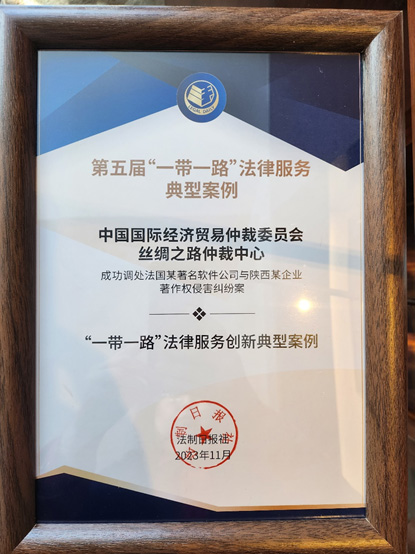 This case is a copyright infringement dispute between a famous French software company and an enterprise in Shaanxi, which was jointly mediated by CIETAC Silk Road Center and the Intellectual Property Tribunal of the Intermediate People's Court of Xi'an City  for the first time by means of "mixed resolution". This is the first international commercial dispute case in Shaanxi Province jointly mediated by the court and foreign-related arbitration institution, with concept of "mixed resolution" and attempted the collaboration of the litigation and arbitration and the link-up between litigation and mediation. It is a typical demonstration of implementing the “Opinion Concerning the Establishment of the Belt and Road International Commercial Dispute Resolution Mechanism and Institutions”  of the CPC Central Committee, and provides successful experience for further exploring innovative practices of foreign-related dispute resolution. The case was also successfully selected as one of the top ten highlights of the construction of "the Belt and Road Initiative" in Shaanxi in 2022, which has a positive impact on further improving China's foreign-related legal service mechanism, promoting the economic and trade development of "the Belt and Road Initiative", enhances the confidence of the rule of law of overseas investors, laying a good foundation for Xi 'an to create an preferred area of international commercial dispute resolution that radiates "the Belt and Road Initiative".